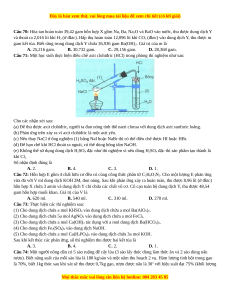 Câu 50: Kim loại nào sau đây tan hoàn toàn trong nước dư? A. Na. B. Fe. C. Al. D. Cu.