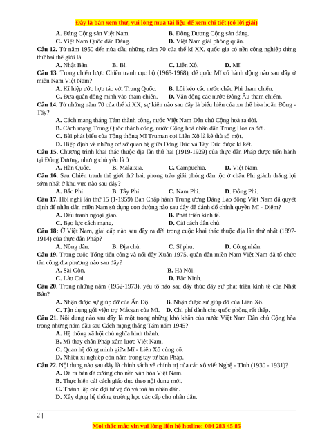 Câu 12. Từ năm 1950 đến nửa đầu những năm 70 của thế kỉ XX, quốc gia có nền công nghiệp đứng thứ hai thế giới là A. Nhật Bản. B. Bỉ. C. Liên Xô. D. Mĩ.