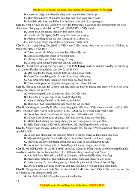 Câu 35. Ở Việt Nam, phong trào cách mạng 1930-1931 không có điểm mới nào sau đây so với phong