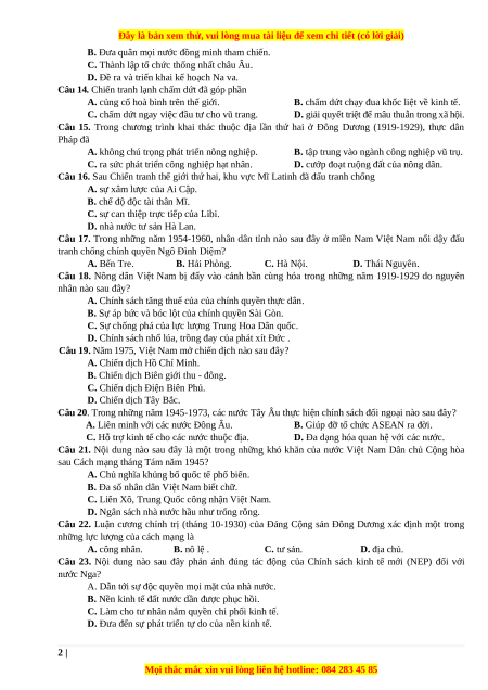 Câu 33. Trong thời kì 1954-1975, cách mạng Việt Nam chịu tác động nào sau đây của lịch sử thế giới?