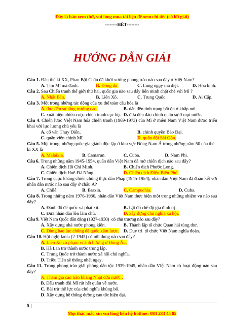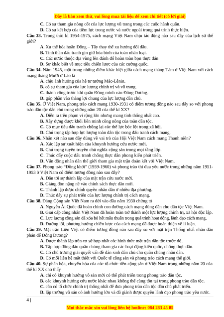 D. lập trường vô sản có ảnh hưởng lớn và đã giành được quyền lãnh đạo phong trào yêu nước. 4 |