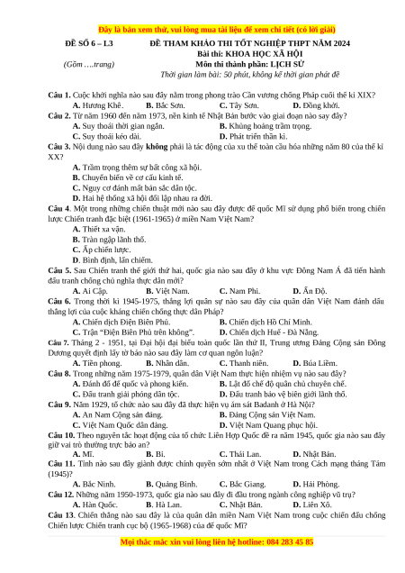 Đề Tốt nghiệp Lịch sử 2024 theo đề tham khảo (Đề 6)