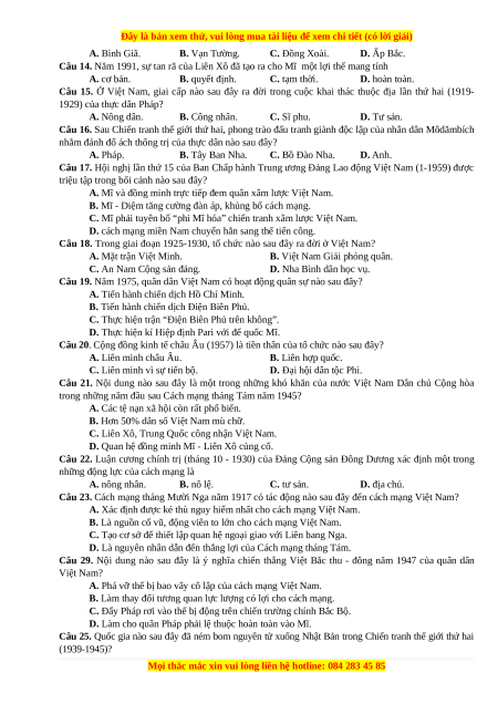 Câu 33. Từ thực tiễn 30 năm chiến tranh giải phóng (1945-1975) của nhân dân Việt Nam cho thấy, đấu