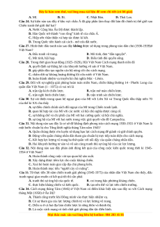 Câu 24. Sự kiện nào sau đây ở khu vực châu Á đã góp phần làm thay đổi bản đồ chính trị thế giới sau