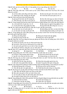 Câu 19. Năm 1972, quân dân miền Nam Việt Nam tiến công đánh Mĩ vào địa bàn nào sau đây? A. Quảng Trị. B. Quảng Ninh. C. Ninh Bình. D. Thanh Hóa.