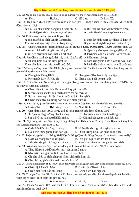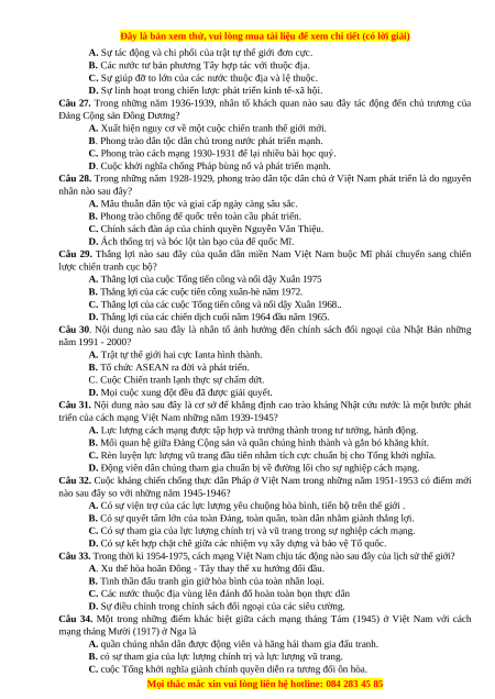 Câu 33. Trong thời kì 1954-1975, cách mạng Việt Nam chịu tác động nào sau đây của lịch sử thế giới?