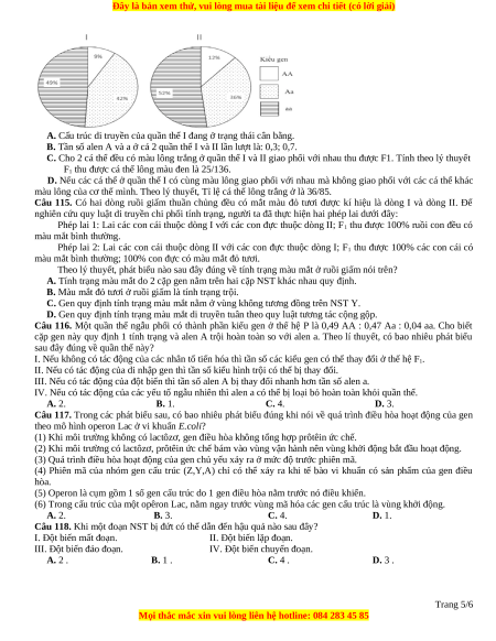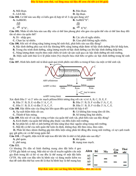 Câu 105. Nhân tố tiến hóa nào sau đây vừa có thể làm phong phú vốn gen của quần thể vừa có thể làm thay đổi
