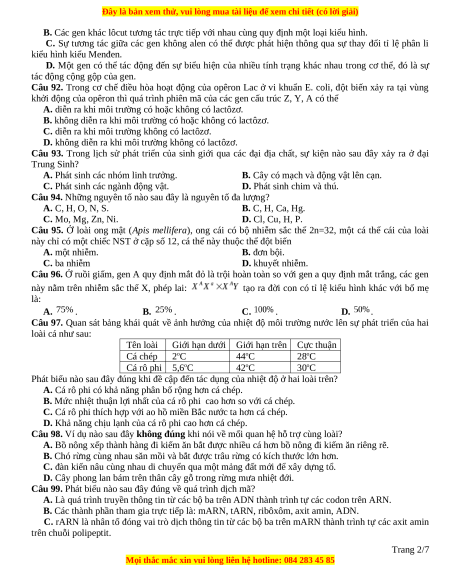 Bài thi: KHOA HỌC TỰ NHIÊN (Gồm 07 trang)