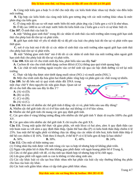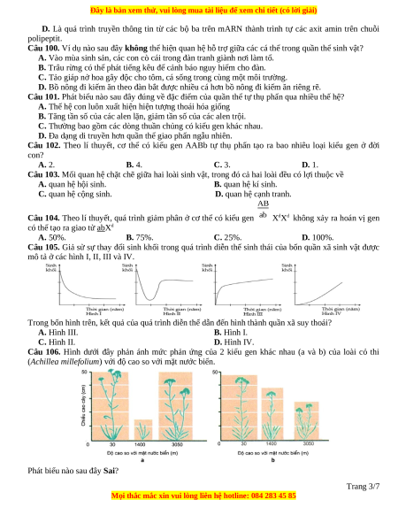 Câu 101. Phát biểu nào sau đây đúng về đặc điểm của quần thể tự thụ phấn qua nhiều thế hệ?