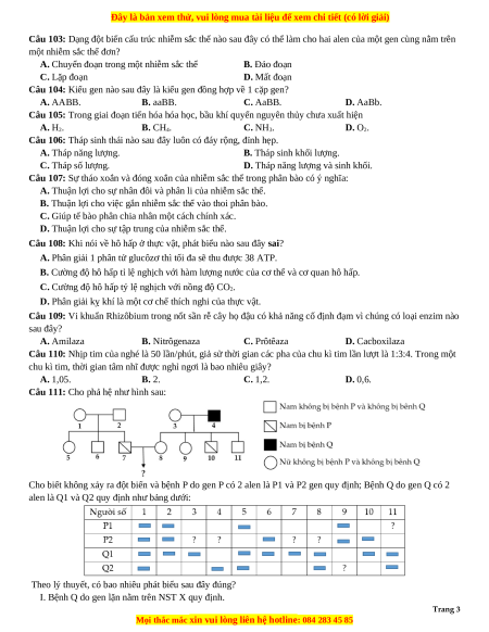 I. Bệnh Q do gen lặn nằm trên NST X quy định. Trang 3