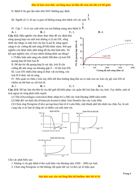 Câu 113: Nỗ lực bảo tồn bền bỉ của thế giới đã khôi phục các quần thể loài bản địa của Anh. Tuy nhiên, một số