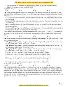 Câu 95: Giả sử alen trội là trội hoàn toàn. Phép lai nào sau đây cho đời con một loại kiểu hình, 2 loại kiểu gen? A. AA × Aa B. Aa × Aa C. AA × aa. D. Aa × aa.