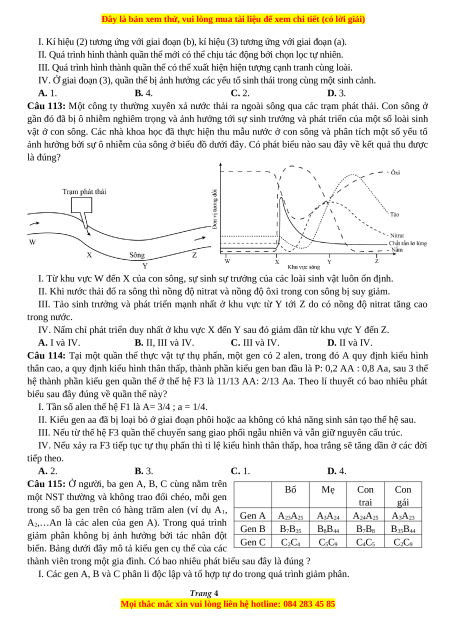 Câu 113: Một công ty thường xuyên xả nước thải ra ngoài sông qua các trạm phát thải. Con sông ở
