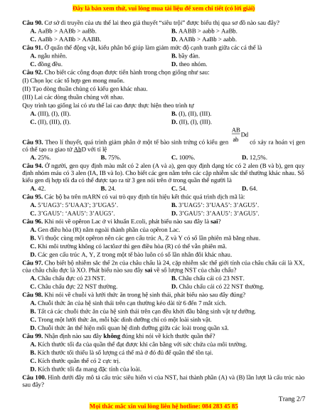 Câu 88. Theo lý thuyết, cơ thể nào sau đây là cơ thể dị hợp tử về 3 cặp gen? A. AaBbDdEe. B. AaBBddEe. C. AaBBddEE. D. AaBBDdEe.