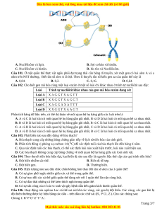 Câu 102. Cho biết gen mã hóa cùng một loại enzim ở một số loài chỉ khác nhau ở trình tự nuclêôtit sau đây: Loài
