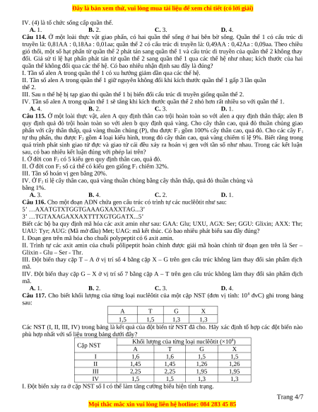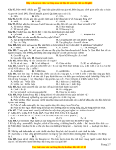 Câu 117. Cho biết khối lượng của từng loại nuclêôtit của một cặp NST (đơn vị tính: 108 đvC) ghi trong bảng sau: A T G X 1,5 1,5 1,3 1,3