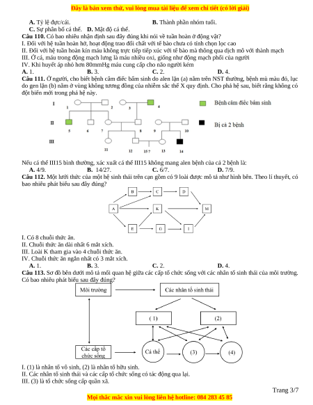 III. (3) là tổ chức sống cấp quần xã. Trang 3/7