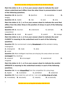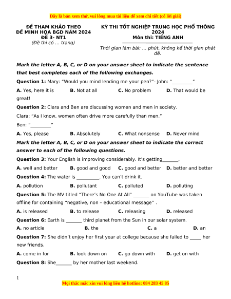 ĐỀ MINH HỌA BGD NĂM 2024 2024 ĐỀ 3- NT1 Môn thi: TIẾNG ANH