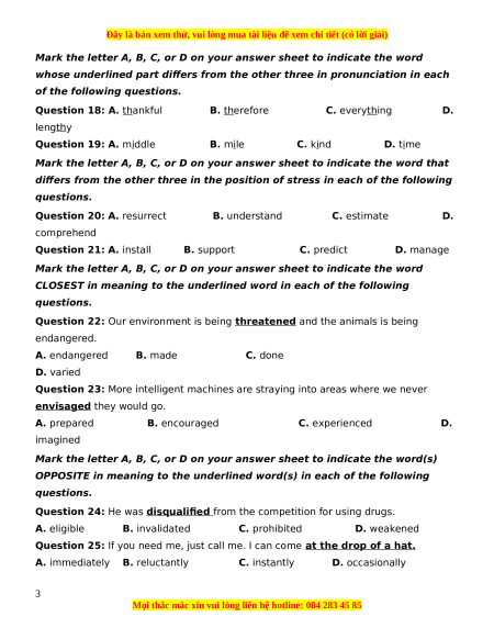 Question 18: A. thankful B. therefore C. everything D. lengthy