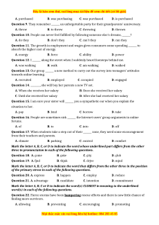 Read the following passage and mark the letter A, B, C, or D to indicate the correct word or