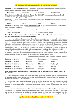 Read the following passage and mark the letter A, B, C, or D to indicate the answer to each of the question.