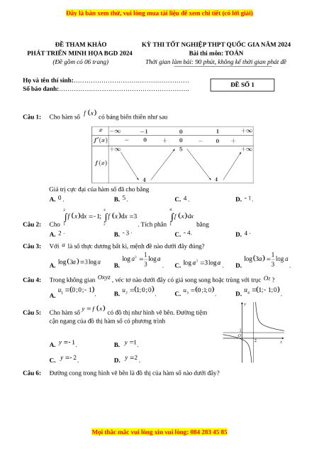 PHÁT TRIỂN MINH HỌA BGD 2024 Bài thi môn: TOÁN