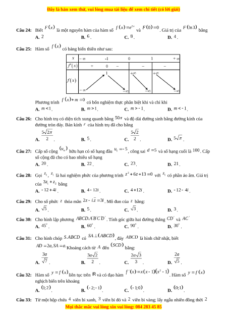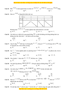 là một nguyên hàm của hàm số và . Giá trị của bằng A. B. . C. . D. . Câu 25: Hàm số