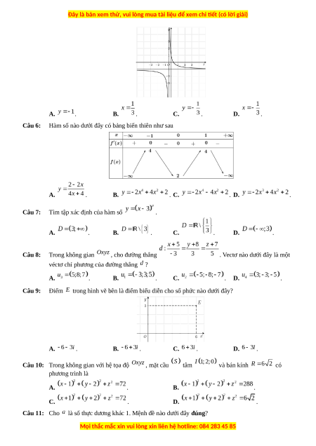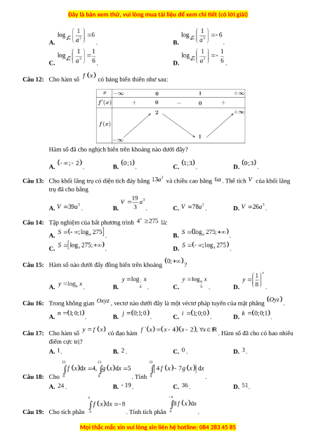 A. . B. . C. . D. . Câu 12: Cho hàm số