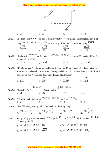 Đề thi được cập nhật liên tục trong gói này từ nay đến hết tháng 6/2024. Chúng tôi đảm bảo đủ số lượng đề đã cam kết hoặc có thể nhiều hơn, tất cả có BẢN WORD, LỜI GIẢI CHI TIẾT và tải về dễ dàng.