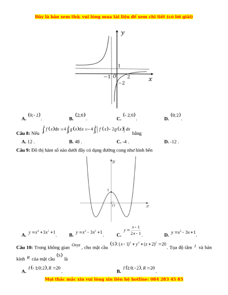 A. . B. . C. . D. . Câu 8: Nếu bằng A. 12 . B. 48 . C. -4 . D. -12 .