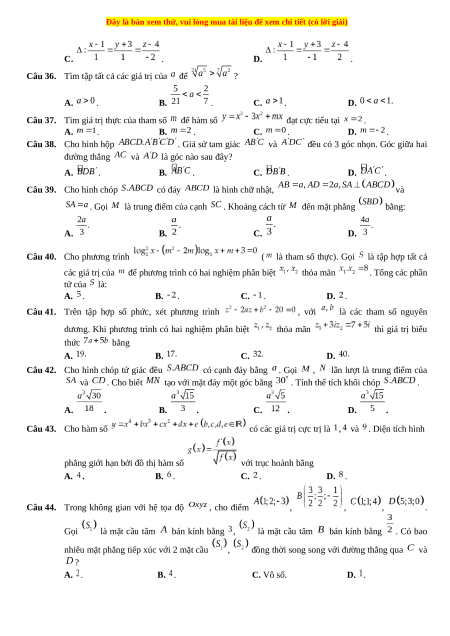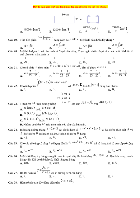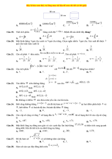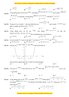 Câu 22. Cho tích phân với khi đó bằng bao nhiêu? A. . B. . C. . D. . Câu 23. Tìm điểm trên đường thẳng sao cho với A. hoặc . B. hoặc . C. hoặc . D. Không có điểm