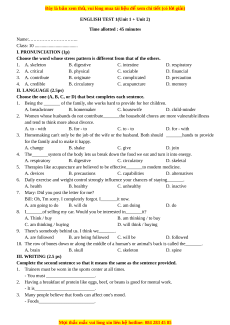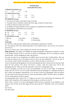 ệ đ xe ể m chi ti t ế (có l i ờ gi i ả ) ANSWER KEY ENGLISH TEST (No1) I. PRONUNCIATION (1 p) 1. A 2. D 3. C 4. B II. LANGUAGE (2.5 ps) 1. A 2. C 3. D 4. B 5. D 6. B 7. B 8. C 9. B 10. D III. WRITING (2.5 ps)