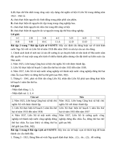 1.3. Cuộc chiến tranh cách mạng chống thù trong, giặc ngoài của nước Nga Xô viết diễn ra trong những năm A. 1918 - 1921. C. 1917 - 1920. B. 1918 - 1920. D. 1919 - 1921.