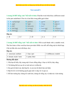 in the part underlined (Tìm từ có âm khác trong phần gạch chân) Đáp án: 1. B 2. C 3. D 4. A 5. C