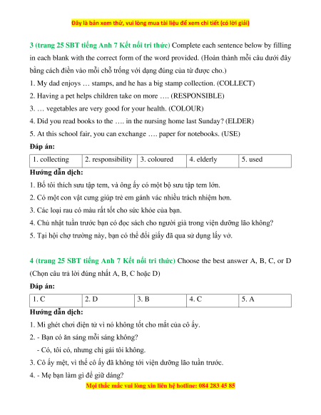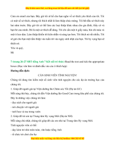 5. At this school fair, you can exchange …. paper for notebooks. (USE) Đáp án: 1. collecting 2. responsibility 3. coloured 4. elderly 5. used Hướng dẫn dịch: