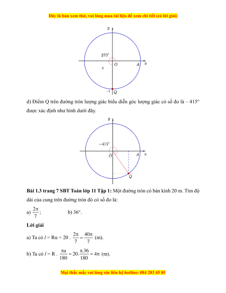 Bài 1.3 trang 7 SBT Toán lớp 11 Tập 1: Một đường tròn có bán kính 20 m. Tìm độ