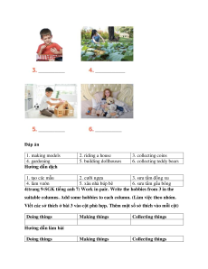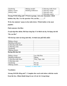 Viết các sở thích ở bài 3 vào cột phù hợp. Thêm một số sở thích vào mỗi cột) Doing things Making things Collecting things