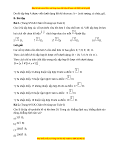 không có b nên b không thu c vào t ộ p ậ h p M ợ . Do đó kh ng ẳ đ nh t ị rên là đúng. +) i Î M Ta nh n ậ thấy, i n m ằ trong t p ậ h p M ợ nên i thu c ộ t p h ậ p M ợ . Do đó kh ng đ ằ nh t ị rên là đúng.