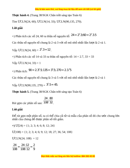 Tìm CLN(24, 60); CLN(14, 33); CLN(90,135, 270).Ư Ư Ư