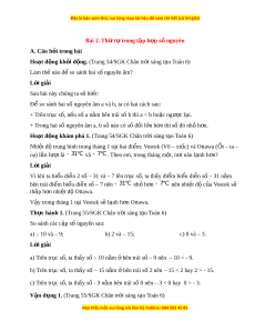 Bài 2. Thứ t t ự rong tập h p s ợ ố nguyên A. Câu h i ỏ trong bài Hoạt đ ng k ộ h i ở đ ng. ộ (Trang 54/SGK Chân tr i ờ sáng t o ạ Toán 6) Làm th nào đ ế s ể o sánh hai s nguyên âm ố ? L i ờ giải Sau bài này chúng ta s bi ẽ t ế :