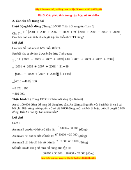 Giải sgk Toán 6 Bài 3: Các phép tính trong tập hợp số tự nhiên (Chân trời sáng tạo)