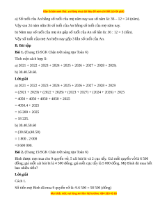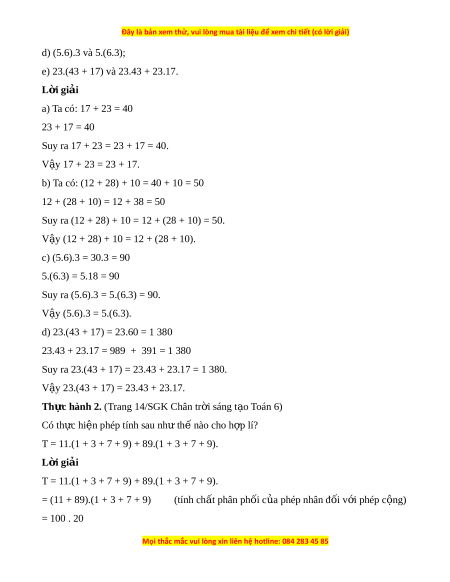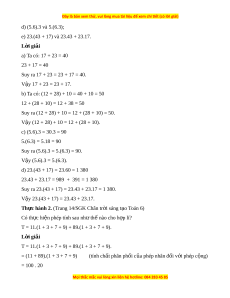 ậ (12 + 28) + 10 = 12 + (28 + 10). c) (5.6).3 = 30.3 = 90 5.(6.3) = 5.18 = 90 Suy ra (5.6).3 = 5.(6.3) = 90. V y ậ (5.6).3 = 5.(6.3).