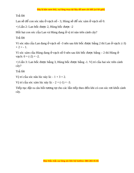 ậ màu đen nên ta có phép tính: 2 + (- 5) = - 3 Hoạt đ ng 2. ộ (Trang 72/SGK Chân tr i ờ sáng t o ạ Toán 6) Trò ch i ơ : “Sóc leo cành cây” +) L n 1: ầ Lan b c đ ố ư c s ợ - ố 3, Hùng b c đ ố ư c s ợ 0. ố H i ỏ Lan và Hùng sẽ đ t ặ con sóc c a ủ mình vào v t ị rí nào trên cành cây?