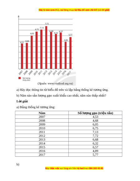 Bài 5. (Trang 121/SGK Chân tr i ờ sáng t o ạ Toán 6) S n ả lư ng g ợ o xu ạ t ấ kh u c ẩ a ủ Vi t ệ Nam t 2007 và ừ 2017 đư c bi ợ u di ể n t ễ rong bi u ể đồ c t ộ sau đây.