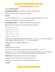 ủ An có đúng hay không? Vì sao? L i ờ giải Kh ng ằ đ nh c ị a ủ An là đúng. Vì số 378 sau khi đư c ợ phân tích thành t ng c ổ a ủ hai s h ố ng ạ (3.11 + 7).9 và 18.