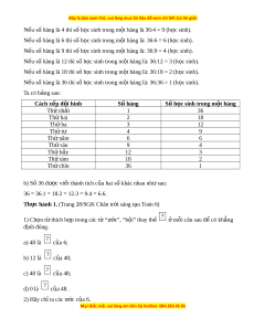 ộ hàng là: 36:36 = 1 (h c s ọ inh). Ta có b ng ả sau: Cách x p đ ế i ộ hình Số hàng S h ố c s ọ inh trong m t ộ hàng Th nh ứ t ấ 1 36 Th hai ứ 2 18 Th ba ứ 3 12 Th t ứ ư 4 9 Th năm ứ 6 6 Th s ứ áu 9 4 Th b ứ y ả 12 3 Th t ứ ám 18 2 Th chí ứ n 36 1 b) Số 36 đư c ợ vi t ế thành tích c a ủ hai s khác nhau nh ố s ư au: