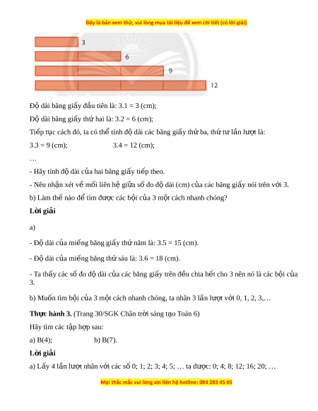 - Ta th y các s đo đ dài c a các băng gi y trên đ u chia h t cho 3 nên nó là các b i c a ấ ố ộ ủ ấ ề ế ộ ủ