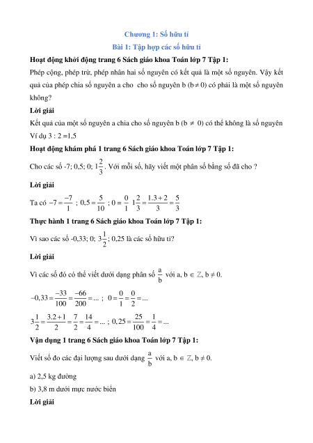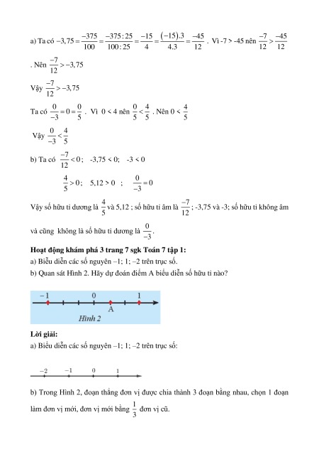 không là số hữu tỉ dương cũng không là số hữu tỉ âm? Lời giải 3 75 3 75: 25 1 5 1 5.3 4 5 7 4 5 a) Ta có 3 ,75 . Vì -7 > -45 nên 100 100 : 25 4 4.3 12 12 12 7 . Nên 3 ,75 12 7 Vậy 3 ,75 12 0 0 0 4 4 Ta có 0 . Nên 0 < 3 . Vì 0 < 4 nên 5 5 5 5 0 4 Vậy 3 5 7 b) Ta có