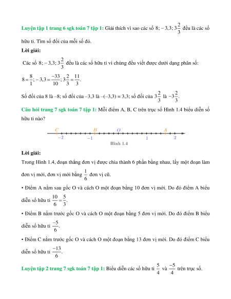 Luyện tập 2 trang 7 sgk toán 7 tập 1: Biểu diễn các số hữu tỉ và trên trục số. 4 4 Lời giải: