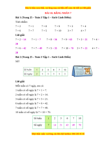 Bài 1 (Trang 25 – Toán 3 T p 1 – Sách Cánh Di u):ậ ề